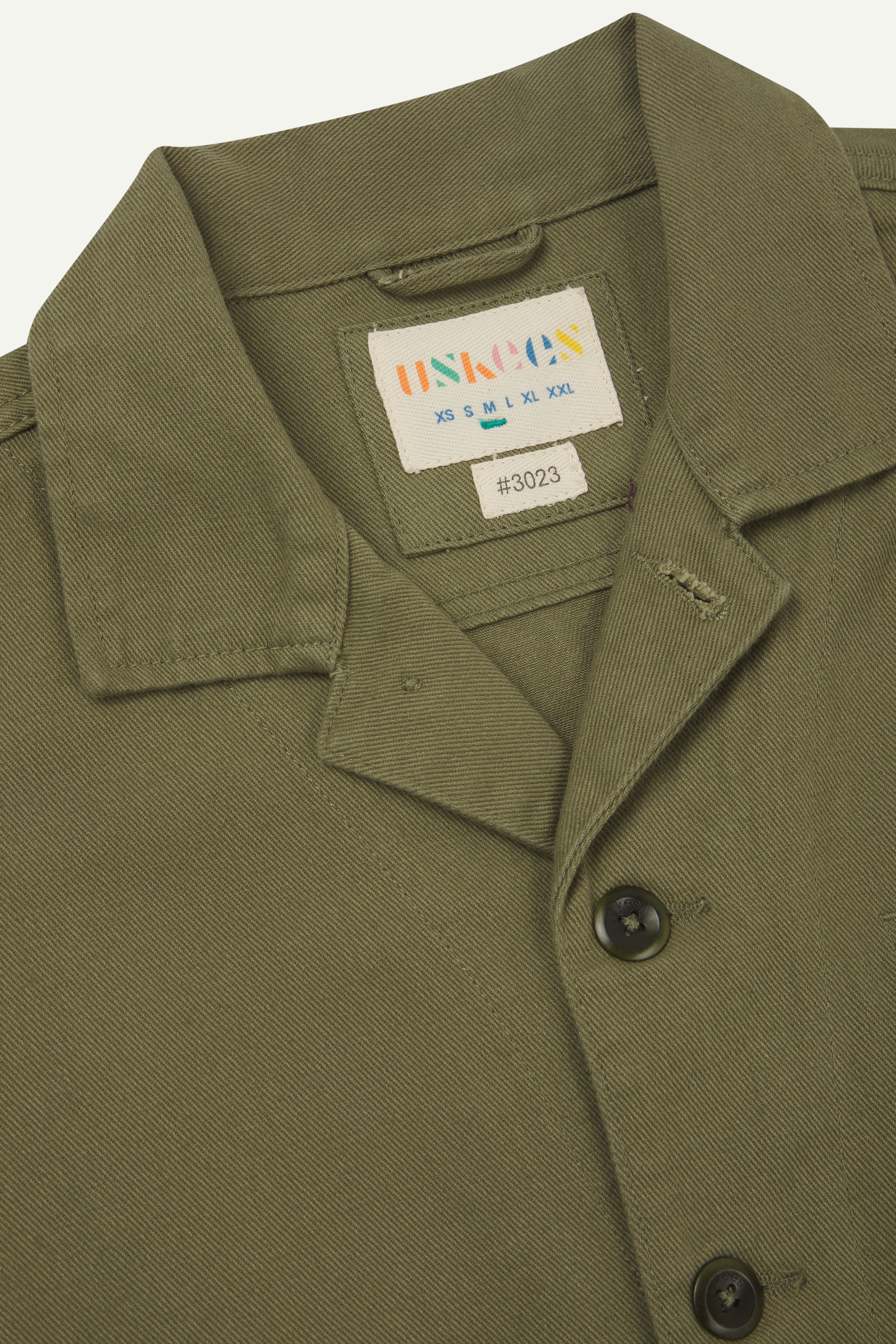 This heavyweight drill commuter blazer is designed with cyclists in mind. Details feature inforced elbow patches, button up to lapel styling, back pocket ,and deadstock buttons from discontinued Uskees pieces. Drill will mould to your shape wear after wear, creating a piece with a unique character.