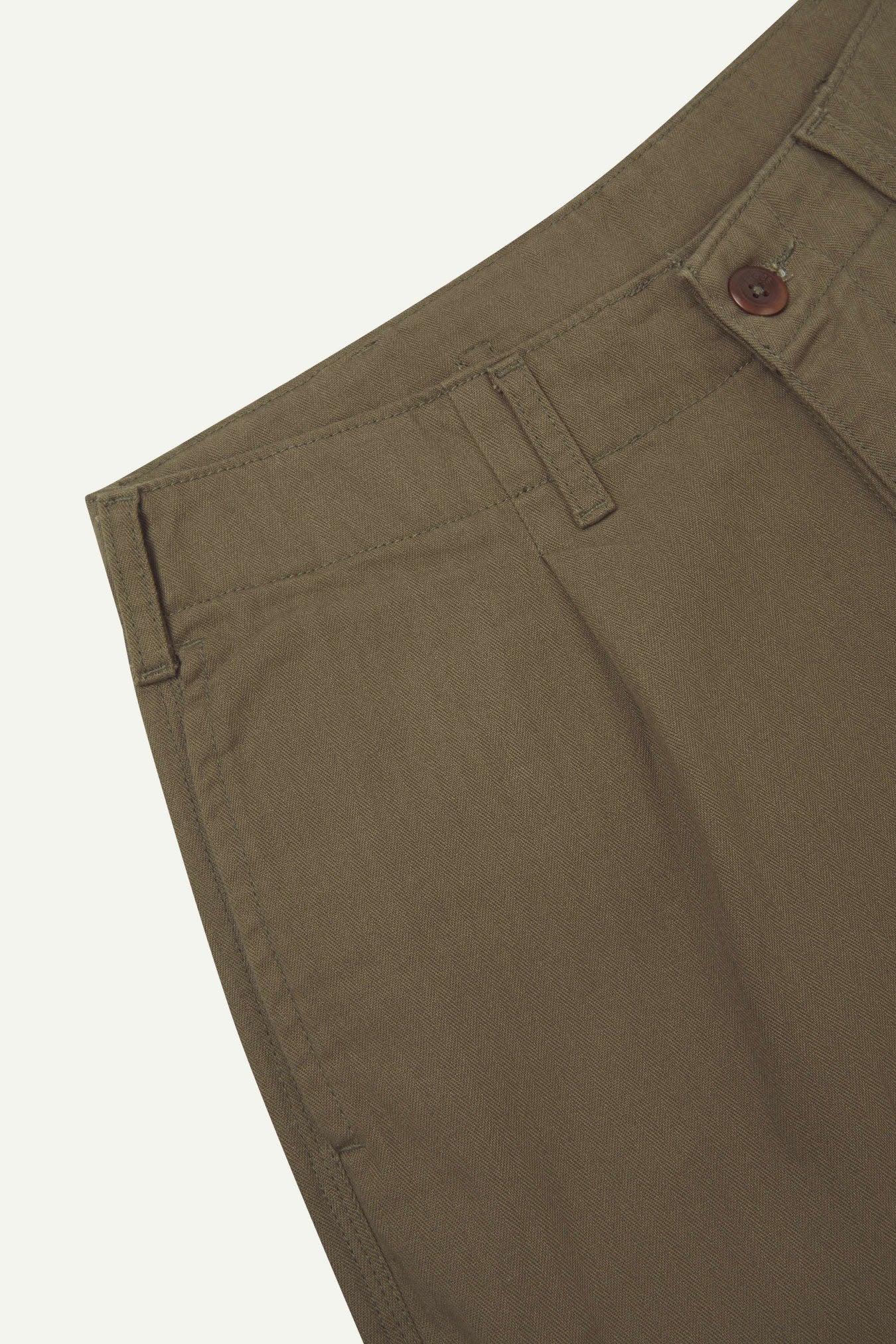 Taking its name from the fabrics' resemblance to the backbone of a herring fish, herringbone is a fabric rich in the history of workwear due to its durability and hard-wearing nature.