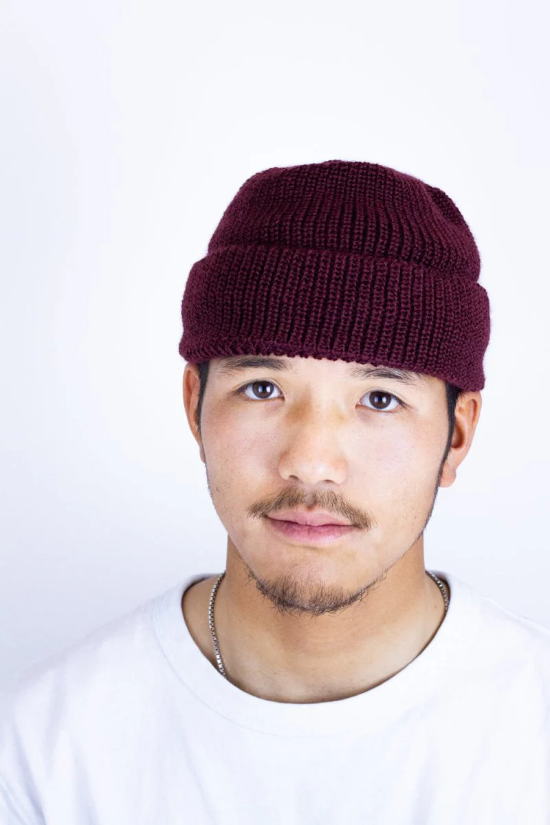 The Alaska from 100% wool in a traditional German knitted marine-style beanie.