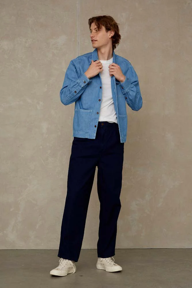 - Indigo, lights up with wear creating your own personal imprint. The fact that the color has to ‘set’ can result in blue hands, Indigo can bleed a little in the beginning. We advise you to wash your garment with natural vinegar.