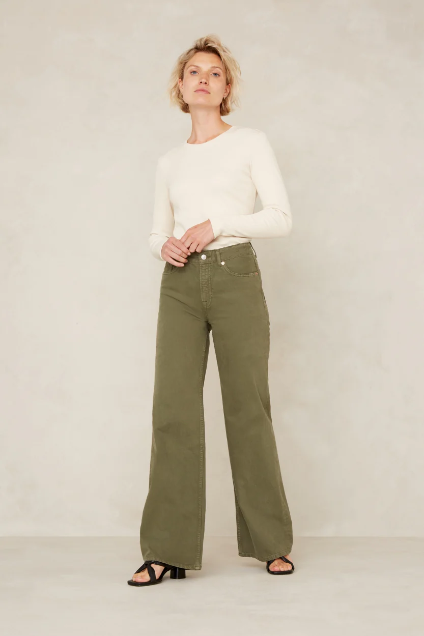 - Composition: 48% pre-consumer recycled cotton, 48% organic cotton, 4% elastane