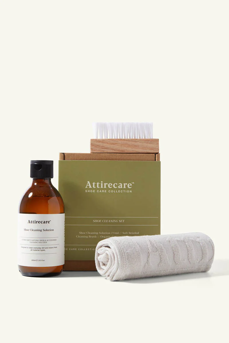 Attirecare's unique shoe and accessories Cleaning Solution is safe to use on all materials. The cleaning solution creates a gentle foam that conditions and cleans everyday dirt and stains from all material types.