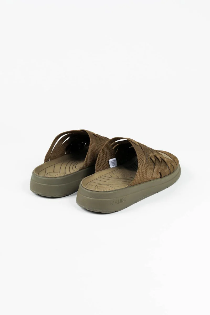 Zuma is an open toe handwoven nylon slip-on sandal. Malibu Sandal's 3-piece outsole features a soft anatomically correct polyurethane footbed for a super comfortable fit, a sturdy phylon midsole for strong structural support and a durable rubber sole for ideal traction.